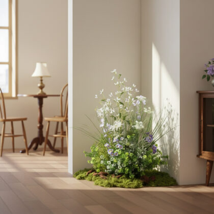 Artificial Wildflower Corner Arrangement – Natural Faux Meadow Flower Decor for Living Room