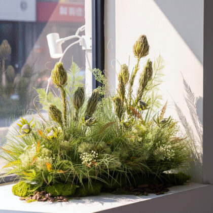 Luxury Artificial Greenery Display Set – Faux Moss, Reeds & Grass for Window Display, Indoor Decor & Visual Merchandising