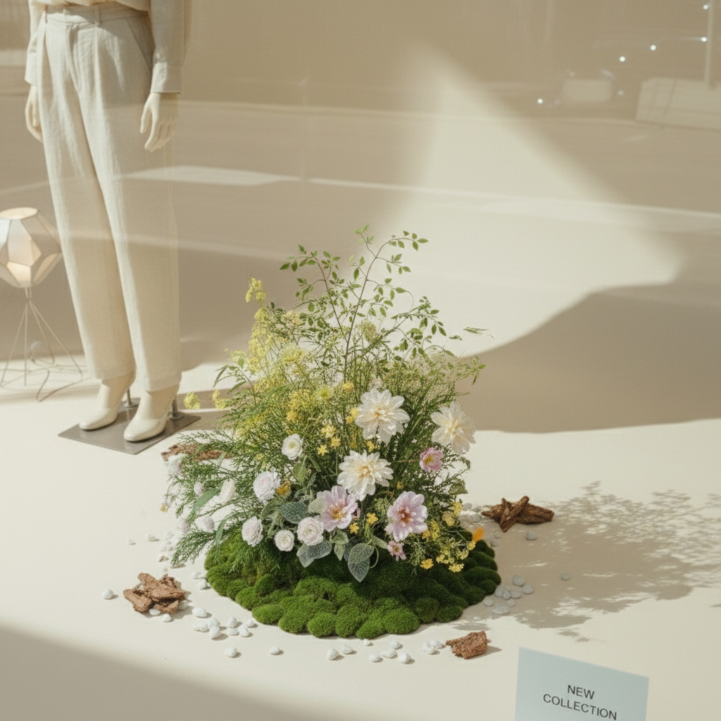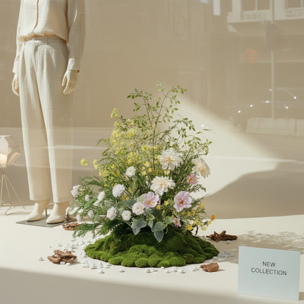 Monet Garden Oil Painting Style High-Realism Floor Floral Display Window Decor for Coffee Shops and Restaurants Space Design