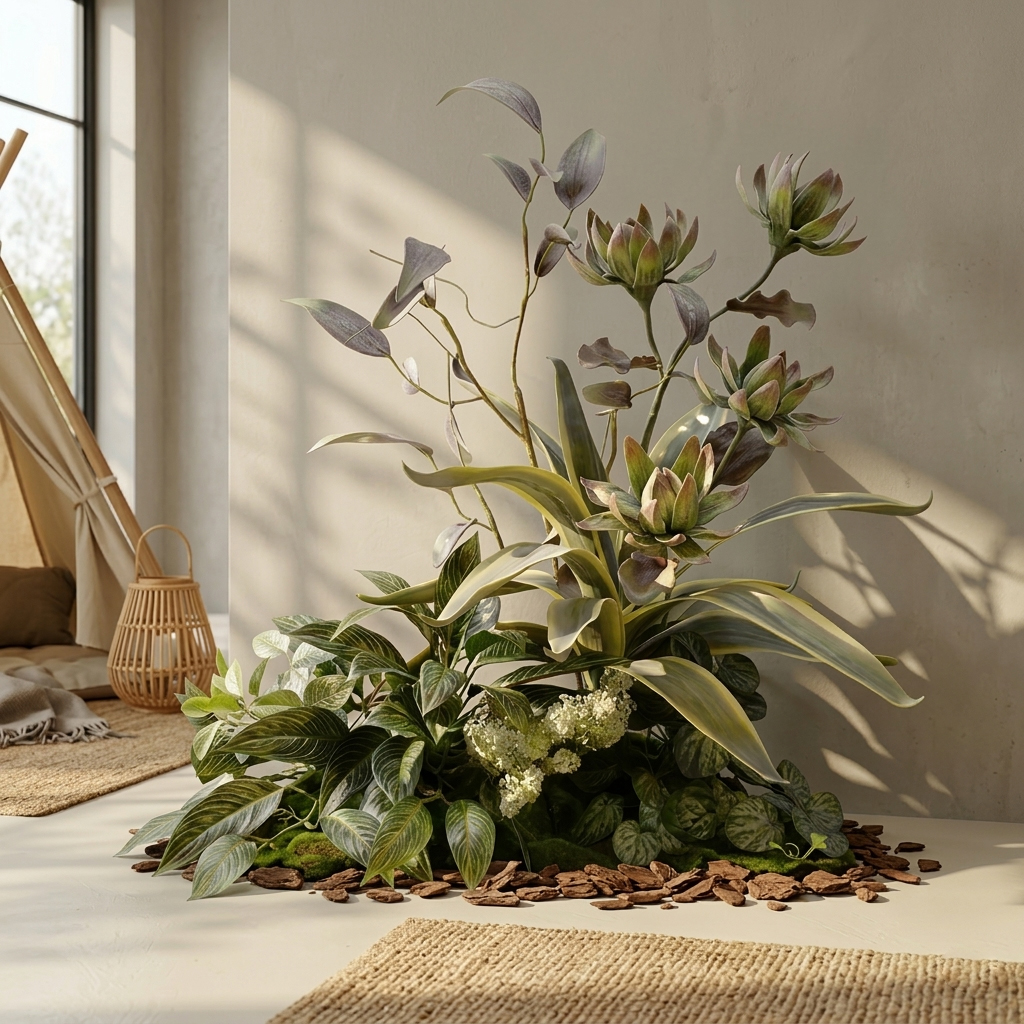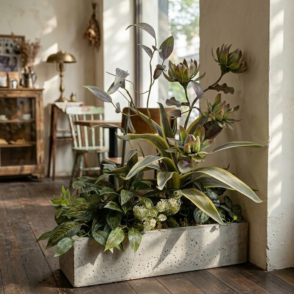 Wabi-Sabi Style Artificial Floor Plant, Modern Luxury Boutique Window Display, Corner Potted Greenery for Clothing Store, Hotel Decor